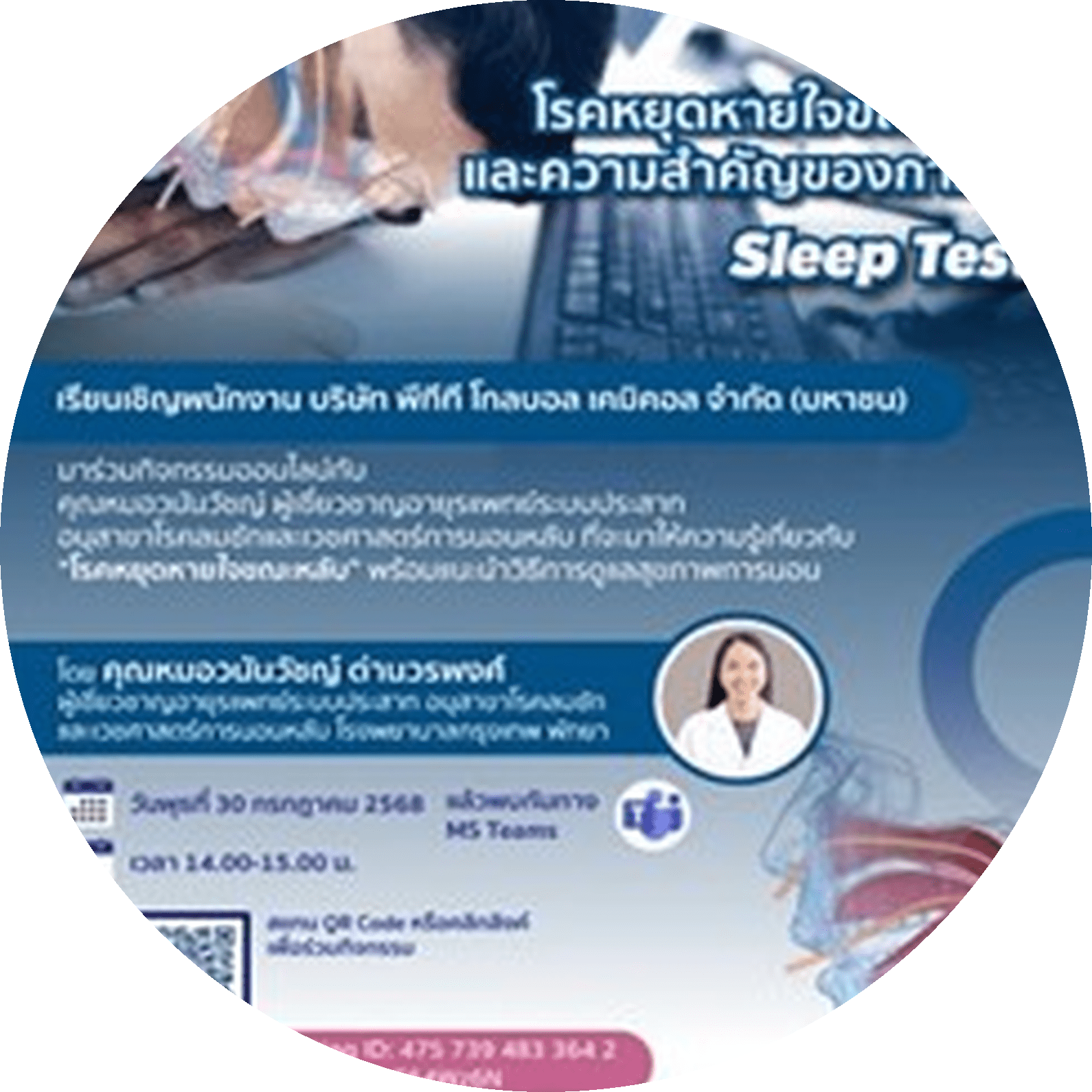 จัดการอบรมความรู้เรื่องโรคภัยยอดฮิต และเทรนด์สุขภาพในสังคมปัจจุบัน อาทิ โรคหยุดหายใจขณะหลับและความสำคัญของการทำ Sleep Test การดูแลร่างกายให้เป็นวัยรุ่น ให้กับพนักงาน โดยได้เชิญบุคลากรทางการแพทย์ มาบรรยาย รวมถึงแนะแนววิธีการดำเนินชีวิตให้เหมาะสม ห่างไกลโรคร้าย