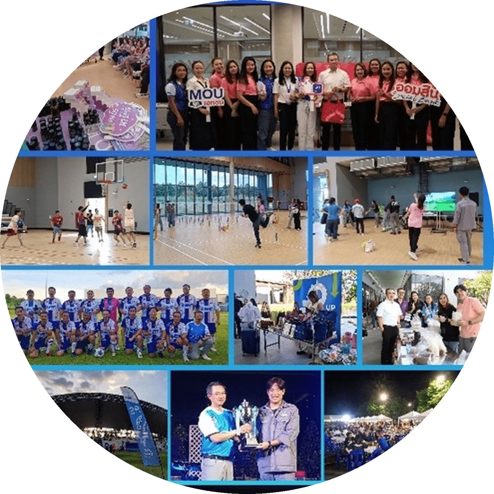 จัดกิจกรรมเพื่อสร้างความสัมพันธ์อันดีระหว่างผู้บริหารและพนักงาน ผ่านการพบปะและทำกิจกรรมร่วมกัน พร้อมทั้งส่งเสริมและสนับสนุนให้พนักงานได้รับความรู้ด้านสุขภาพแบบองค์รวม ทั้งสุขภาพกาย (Health) สุขภาพใจ (Mindfulness) และสุขภาพทางการเงิน (Wealth) โดยมุ่งเน้นการปรับเปลี่ยนพฤติกรรมในด้านการบริโภค การออกกำลังกายเพื่อป้องกันและแก้ไขปัญหาสุขภาพ การจัดการความเครียด และการบริหารจัดการด้านการเงินอย่างมีประสิทธิภาพ